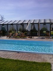 Piscina tip laguna, de dimensiuni generoase 20x15m, cortul de evenimente, spatiile verzi frumos amenajate vor crea atmosfera speciala pentru un eveniment de neuitat.